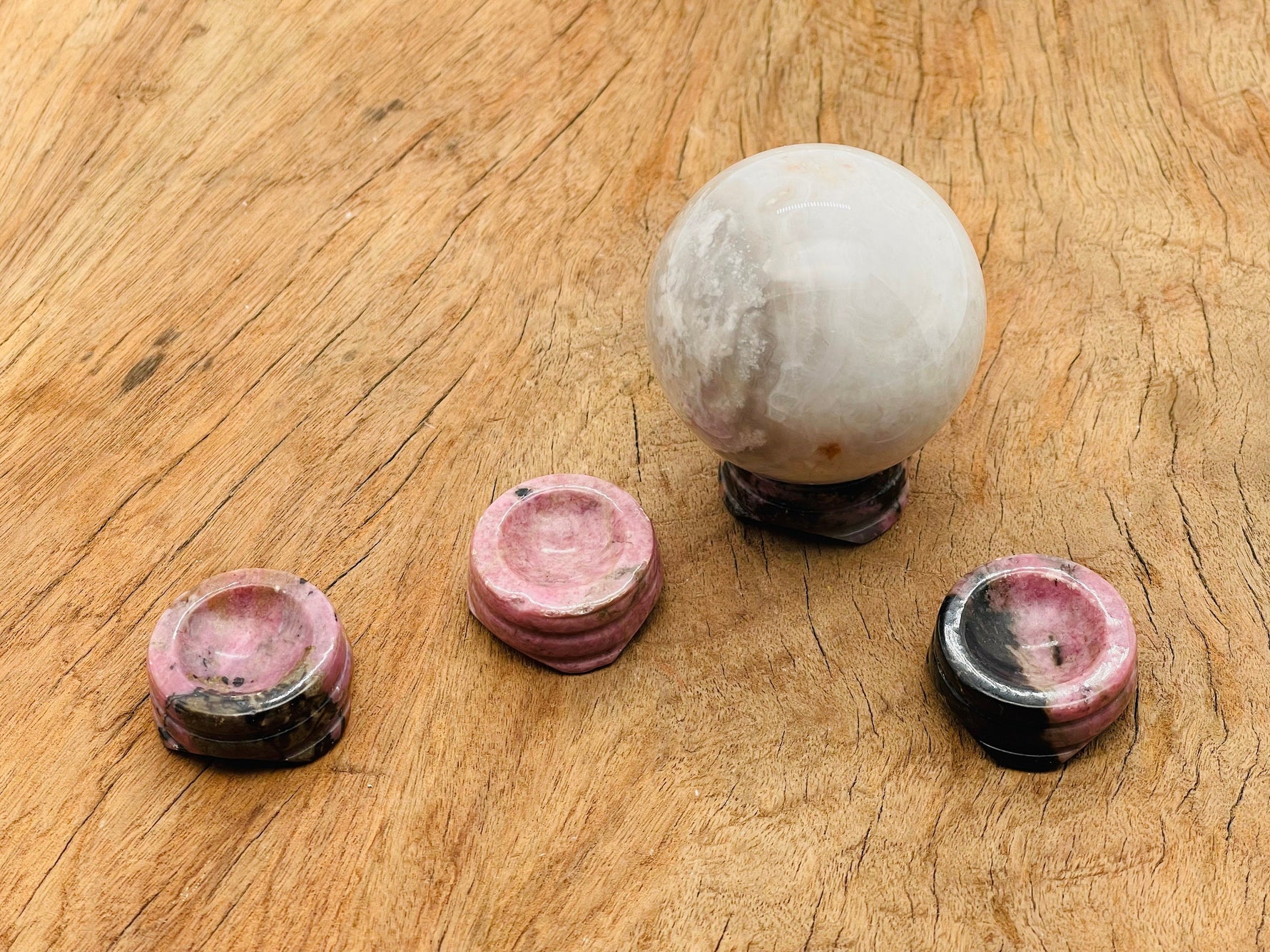Rhodonite Crystal Sphere Stand - Carved Gemstone - Home Decor - SD1028