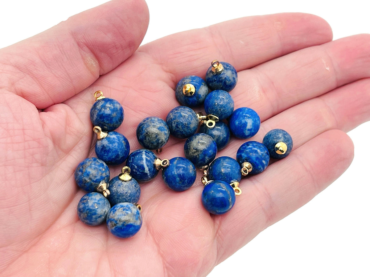 Prix unitaire / parpendentif en pierre précieuse, fournitures de bijoux, collier à billes rondes, pendentif 10 mm, pendentif boule, breloques perles boules, pierre naturelle, pendentif boule de cristal, boucle d'oreille en pierre précieuse, perles de pierre précieuse, cristaux en gros, boule de cristal, lapis-lazuli