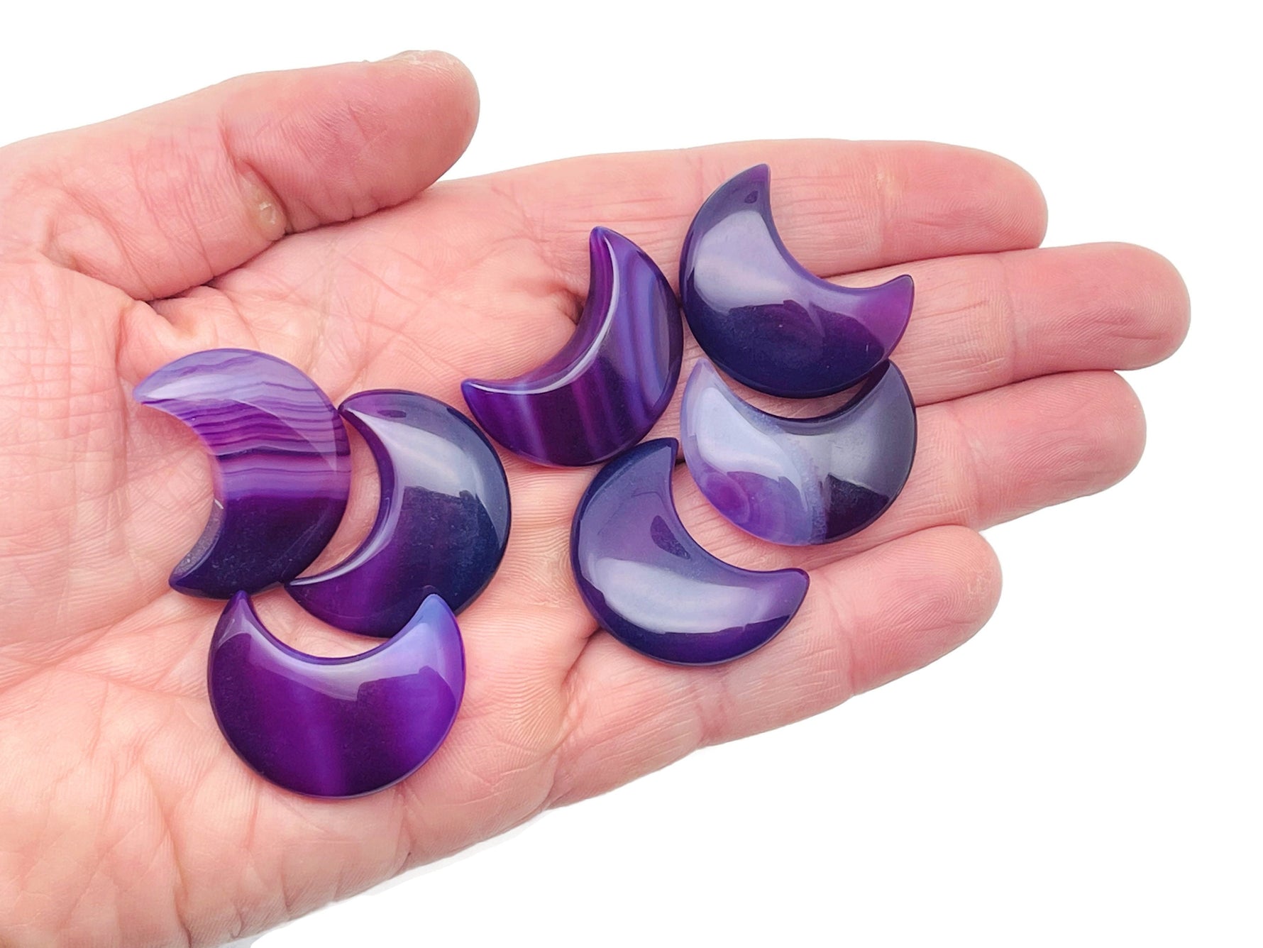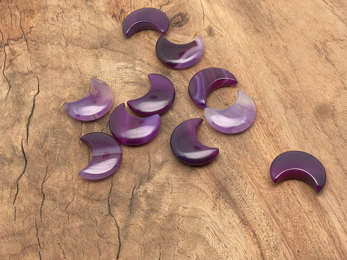Lune en agate violette - Cristal de lune - Lune sculptée - Cristal de guérison - Croissant de lune en pierre précieuse - 3 x 1,6 cm - MO1055